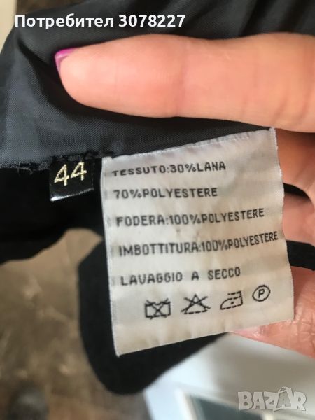 Палтото е без забележки. Посочения на етикета размер е 44, но според мен е 42. Стига до средата на бедрото, но това зависи от височината.