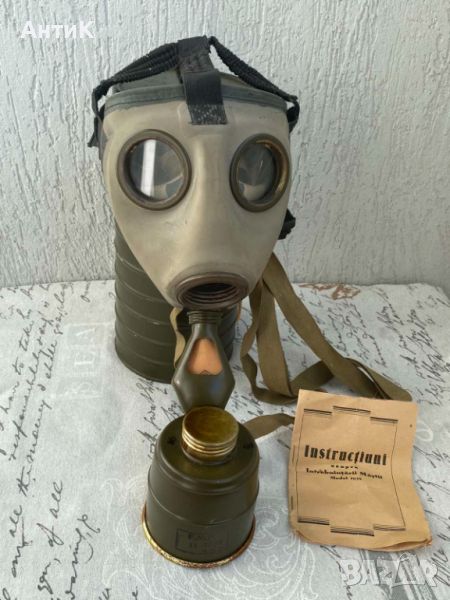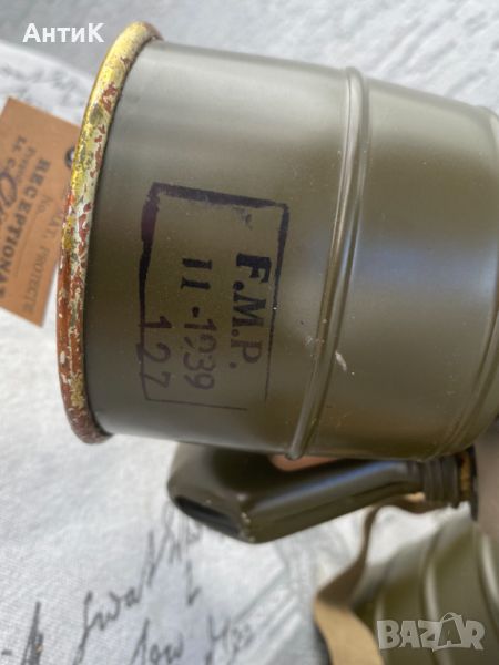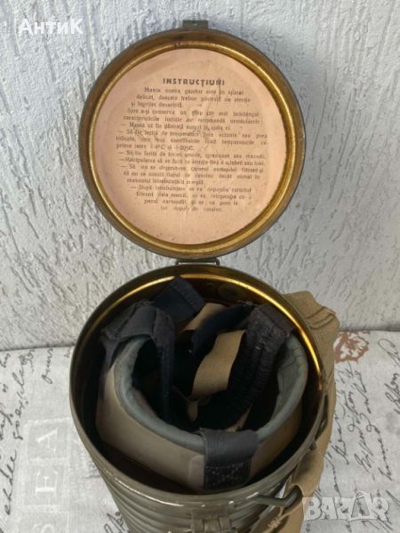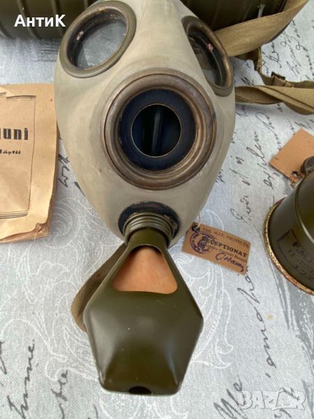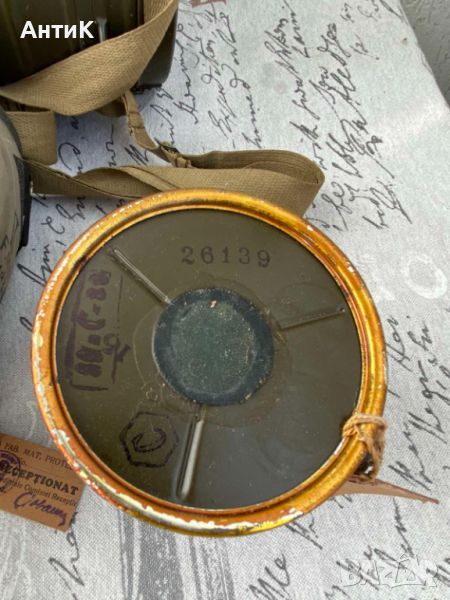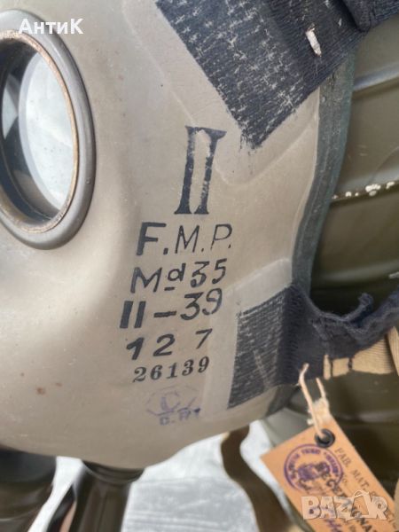 Неизползван румънски противогаз, модел от Втората Световна Война F.M.P. Md.35 1939 год. Противогаза е в абсолютно МИНТ състояние, без каквито и да било забележки. Ластиците са еластични, както и гумата. Филтъра е не разпечатван. Кутията в перфектно състояние. Абсолютно пълен комплект!