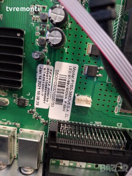 MAIN BOARD P150-3683V6.0 for Salora 43UHL2800 43inc DISPLAY CX430DLEDM Борда е гарантирано работещ Демонтиран от телевизор Salora модел 43UHL2800 със счупен дисплей CX430DLEDM тествана от нашия техник
