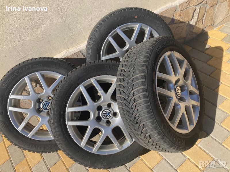 Зимни Kumho WinterCraft WP51 91T. DOT 2719. Всяка джанта е снимана отделно, могат да се видят забележките , но няма криви и заварки. 5x100. Гумите са карани много малко, един сезон. Продават се само в комплект, моля без въпроси само за гуми. Благодаря.