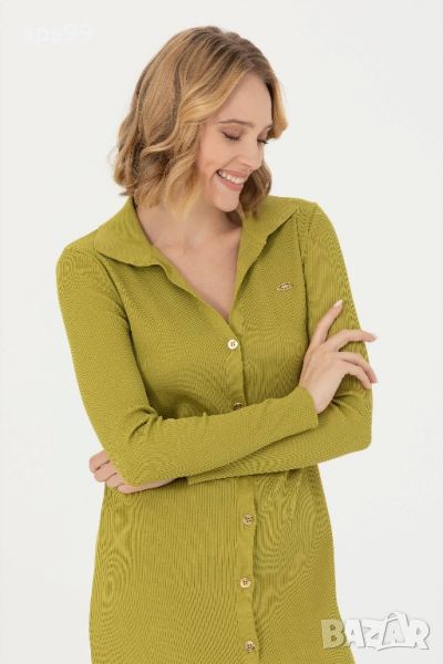 Предлагам дамска рокля на U.S. POLO ASSN, в така актуалния цвят авокадо, която би могла да се носи и като жилетка в разкопчан вариант, от колекцията на бранда за сезон пролет 2024 година, размер S, който, за съжаление, се оказа голям за мен.