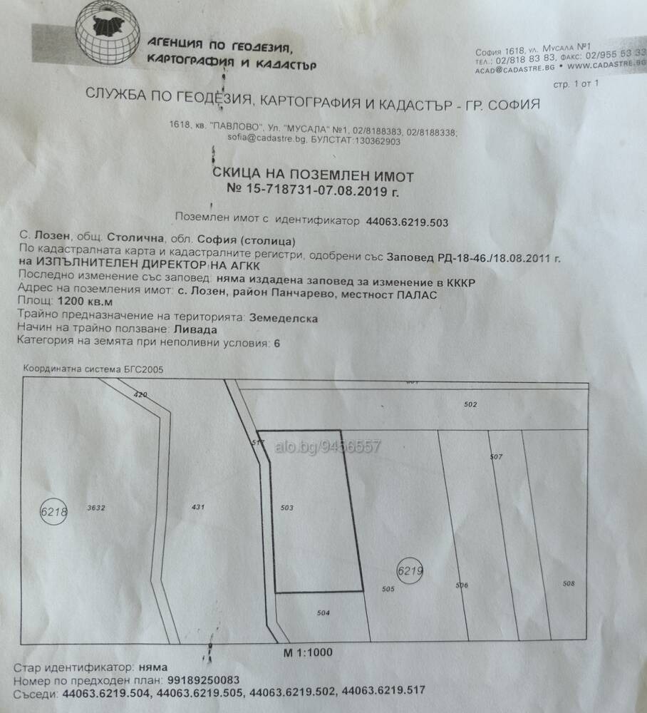 Продава ПАРЦЕЛ, гр. София, с. Лозен → Обява 45282896