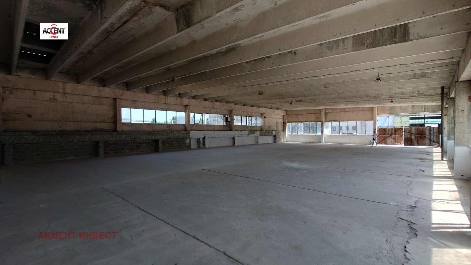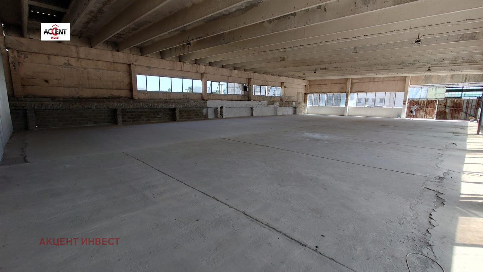 КОД 21091 'Акцент Инвест' Ви предлага склад под наем в района на 'Западна промишлена зона'. Имотът е с площ от 540 кв.м. и се намира изцяло на партер. Състои се от една основна площ, няма офис, санитарен възел - общ за обекта (извън него). Размерите му са 30 метра дължина, 18 метра ширина. Портална врата 'Хьорман' с височина 3,5м. и ширина 4,48м., скалдът има и друг вход с портал (4,30м. ширина и 3м. височина). Складът ще бъде завършен с подова настилка бетон (изравнен), счупените стъкла ще бъдат подменени, ще бъде поставен входен портал (метален). Има възможност и за други подобрения, по договорка (може да са за сметка на наемателя, но да се изпълнят от наемодателя). Посочената цена е без включен ДДС! ТИР достъп, трифазен ток, мощност, неограничен брой паркоместа в обекта. Има възможност да бъде разделен на два по-малки склада. Допълнително има такса обслужване в размер на 0,50 евро/м2 (сметоизвозване,видеонаблюдение, охрана, улично осветление).