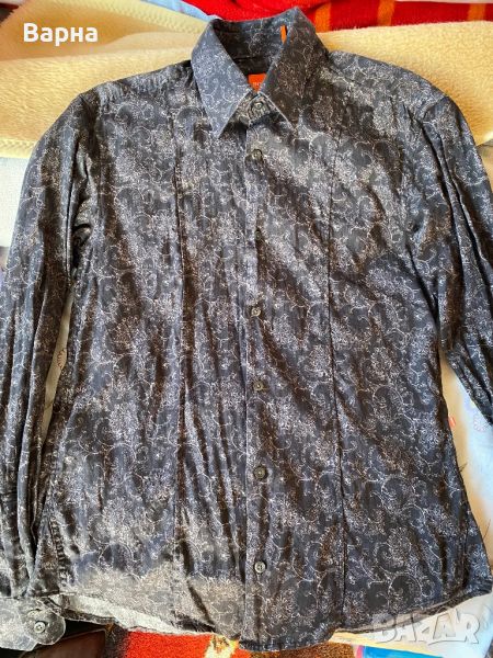 Продавам мъжка риза Hugo Boss Orange,размер М,в много добро състояние,точни размери рамене 44см.подмишници 50см. дължина от рамото до долу 65см.