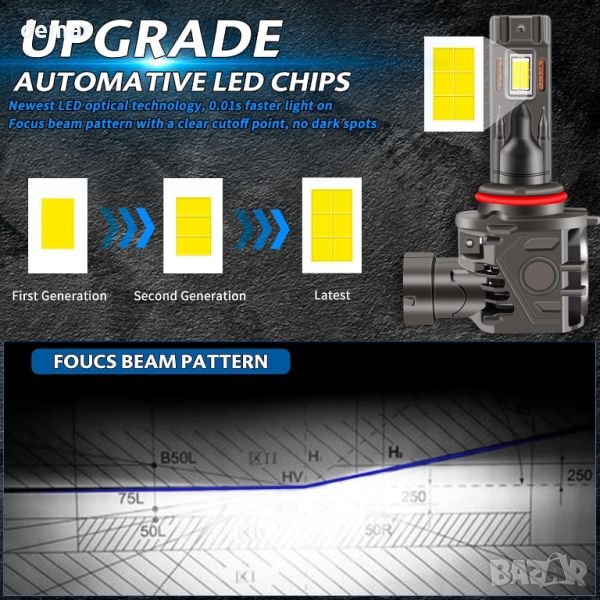 OPL5 9005 LED крушка за фарове разполага с първокласни LED чипове за превъзходна видимост, предлагащи 60W/комплект (30W/крушка) и 10000LM/комплект (5000LM/крушка) мощност при 6500K ксеноново бяло, 200% по-ярка от халогенните крушки. Неговият модел на фокусния лъч, изработен с дизайн на халогенен лъч 1:1 и ултратънка медна плоча, осигурява по-широко осветяване и по-дълго разстояние на осветяване с прецизна технология за позициониране без тъмни петна или отблясъци. Отличаващи се с интегрирана система за охлаждане с топлоустойчив авиационен алуминиев корпус на лампата и 12000 RPM бързо охлаждащ вентилатор, тези крушки ефективно охлаждат LED чипове за подобрена производителност и дълголетие. С дизайн 1:1, безжична инсталация plug and play и съвместимост с 98% от превозните средства благодарение на вградения интелигентен IC драйвер, тези крушки предлагат ясно осветление без отблясъци за подобрена безопасност при шофиране при различни условия.