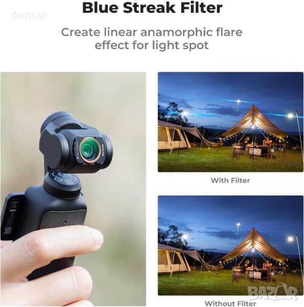 Филтър със специални ефекти, предназначен да добавя завладяващи сини ивици към вашите снимки, подобрявайки тяхната артистична привлекателност, особено идеален за нощни сцени и улавяне на динамични източници на светлина като фарове. С ултратънък дизайн с дебелина само 2,0 mm, той пасва безпроблемно на вашия DJI Pocket 3, без да засяга лещата на гимбола, осигурявайки лесно съхранение и транспортиране. Подобреният магнетизъм осигурява сигурен процес на закрепване и откачане. Изработено от оптично стъкло AGC с 28 слоя нано покритие, то намалява отражението, отблясъците и подобрява качеството на изображението, като същевременно е водоустойчиво, устойчиво на мръсотия и надраскване. Плюс това, той се предлага със закалено екранно фолио за допълнителна защита срещу удари и драскотини.