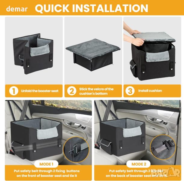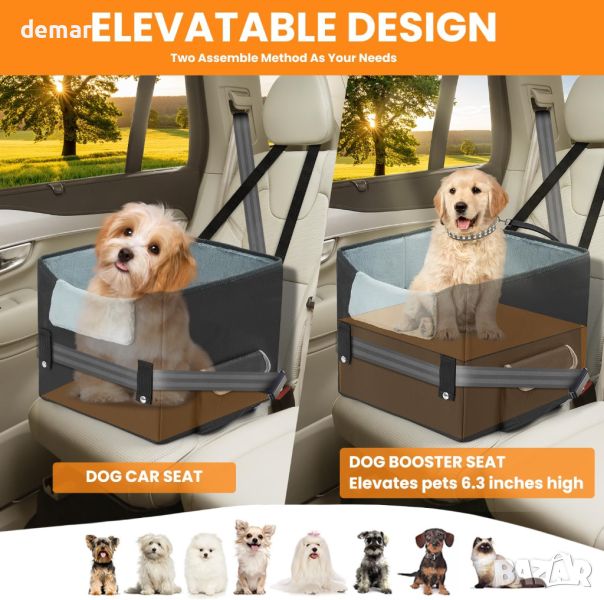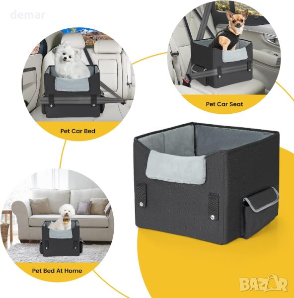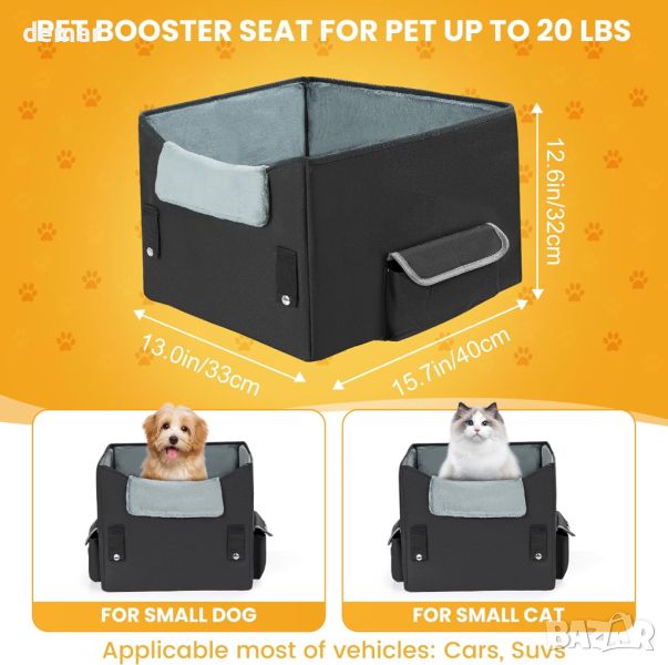 Столчето за кола UNICITII за малки кучета е проектирано да подобри изживяването при пътуване за малки кучета и котки, като осигурява сигурно и удобно високо място във вашия автомобил. Инсталиран директно на седалката на колата, той позволява на домашните любимци да се наслаждават на ясна гледка към пейзажа, което може да помогне за облекчаване на безпокойството и повишаване на чувството им за сигурност по време на возене. Тази повдигаща седалка разполага с регулируема лента, която я закрепва сигурно към столчето за кола, предотвратявайки плъзгане и осигурявайки стабилност. Подходящо е за домашни любимци с тегло до 20 lbs, с размери 18L × 18W × 13H инча—въпреки че се препоръчва да измерите вашия домашен любимец преди покупка, за да осигурите добро прилягане. Модернизираната здрава основа поддържа добре вашия домашен любимец, а плюшената, лесна за почистване подплата осигурява комфорт. Универсална в употреба, тази бустер седалка може да служи и като уютна седалка за вашия домашен любимец у дома или по време на други пътувания, което го прави практично допълнение към принадлежностите за пътуване на вашия домашен любимец.