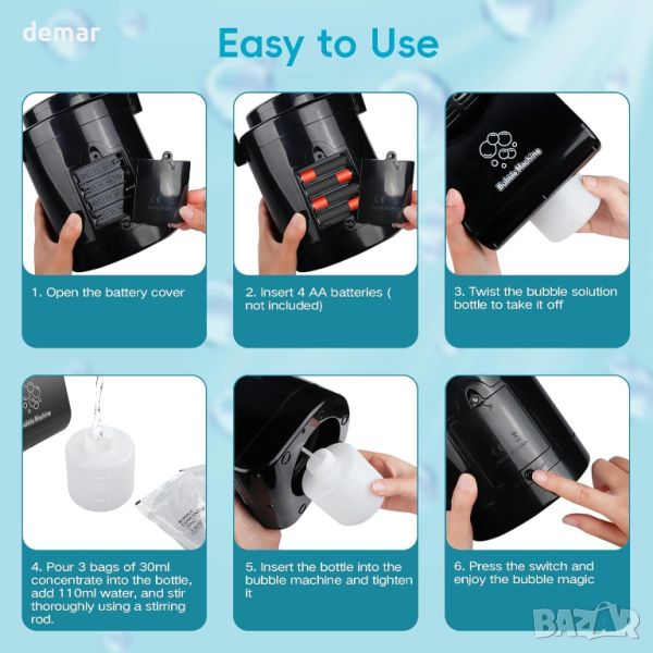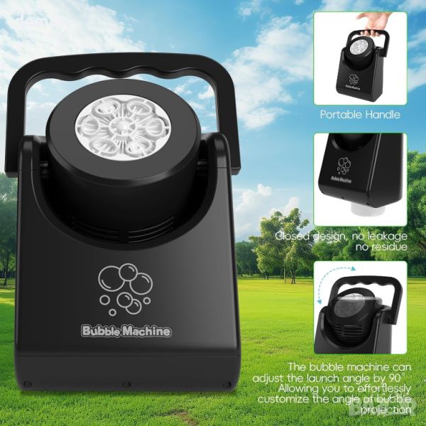 Изпитайте безкрайно забавление с мехурчета с най-новата машина за балончета, включваща регулируем ъгъл на изстрелване до 90°, без усилие персонализирайки проекцията на балончета. Генерирайки над 15 000 мехурчета в минута, той доставя цветни мехурчета на закрито без вятър, идеални за детска игра или парти забавление. Неговият преносим дизайн, захранван от четири батерии, осигурява трайна производителност за забавление на открито. С напълно затворен дизайн, подвижна бутилка за вода и включен концентрат за мехурчета, работата е удобна за потребителя. Изработен от издръжлив ABS материал с водоустойчив дизайн и CPC сертификат за безопасност на играчките, той е безопасен за всички случаи. Идеална за различни събития като сватби, рождени дни или събирания на открито, това е най-добрата машина за балончета за деца, което я прави идеален подарък за Великден, Коледа или Свети Валентин.
