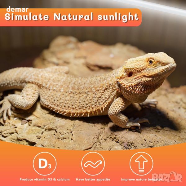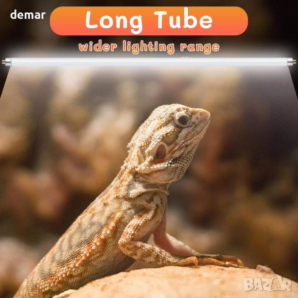 REPTI HOME T5 UVB светлина за влечуги предлага симулация на естествена слънчева светлина за вашите влечуги, като насърчава комфортна среда и повишава апетита и естественото поведение. Със стабилен UVB и UVA изход (10% UVB, 30% UVA) за осигуряване на здравето на влечугите и предотвратяване на костни заболявания, дизайнът на дългата лампа осигурява широка зона на осветяване и издръжливост до 10 000 часа. Подходящ за всички влечуги и земноводни, включително гущери, гекони, брадати дракони, костенурки, змии, жаби, хамелеони и костенурки, с опции за тропически/субтропични (UVB 5.0) и пустинни (UVB 10.0) обитатели.