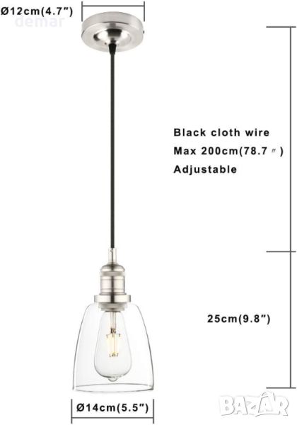 Индустриалното ретро осветление на Phansthy съчетава отлична изработка със стилен, стегнат и елегантен дизайн, включващ прозрачен стъклен абажур, за да осветява максимално вашето пространство. Идеален за различни настройки като тавански помещения, стълбища, селски къщи, ресторанти и лични офиси, той поддържа различни типове крушки, включително крушки с нажежаема жичка, LED и халогенни с основа E27, до 40 W. Идеален за помещения от 15-20 кв.м. (Забележка: крушката не е включена).