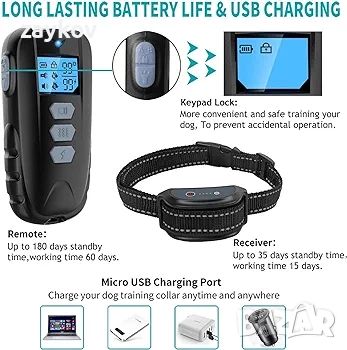 Водоустойчив нашийник за кучета и LCD екран с подсветка: Приемникът на този нашийник за обучение е направен от IPX7 водоустойчив материал, така че не е необходимо да сваляте нашийника от вашия домашен любимец, за да плувате. Дистанционното управление има дисплей с LED подсветка, който може да се използва през нощта.