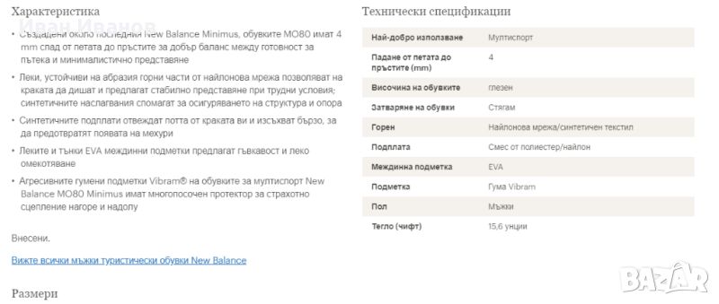 Нови , само пробвани Много леки и удобни Създадени около последния New Balance Minimus, обувките MO80 имат 4 mm спад от петата до пръстите за добър баланс между готовност за пътека и минималистично представяне