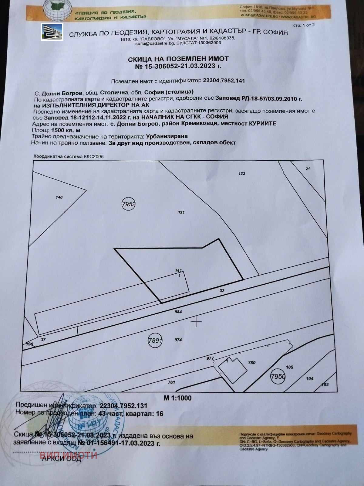 Продава ПАРЦЕЛ, гр. София, с. Долни Богров → Обява 45293092
