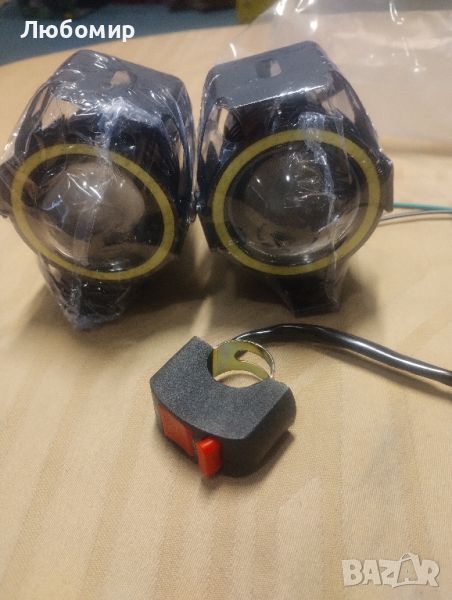 2 броя Универсалени led проектори Angel Eye, U7 за ATV или мотоциклет, С 2 фази и функция Strobe