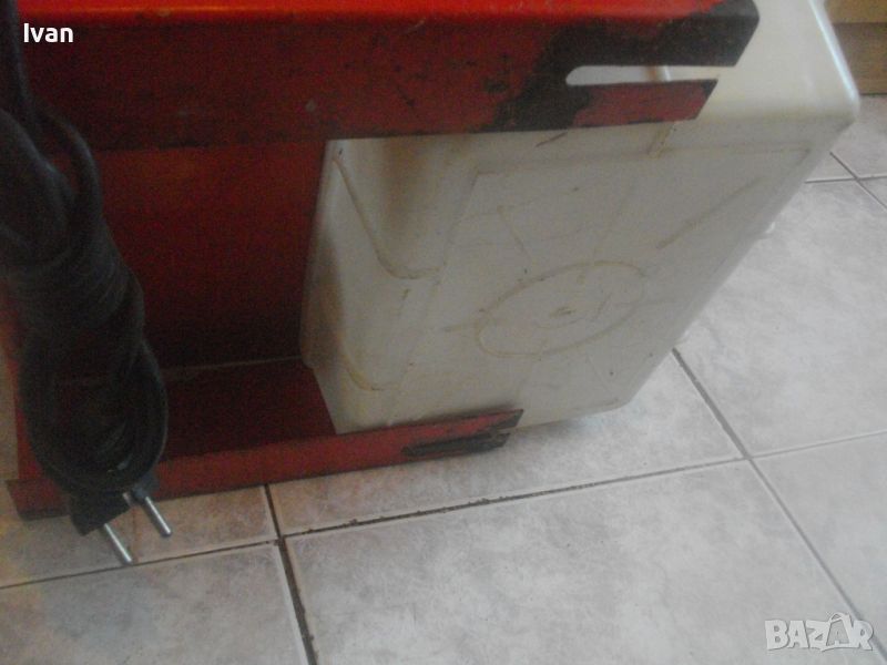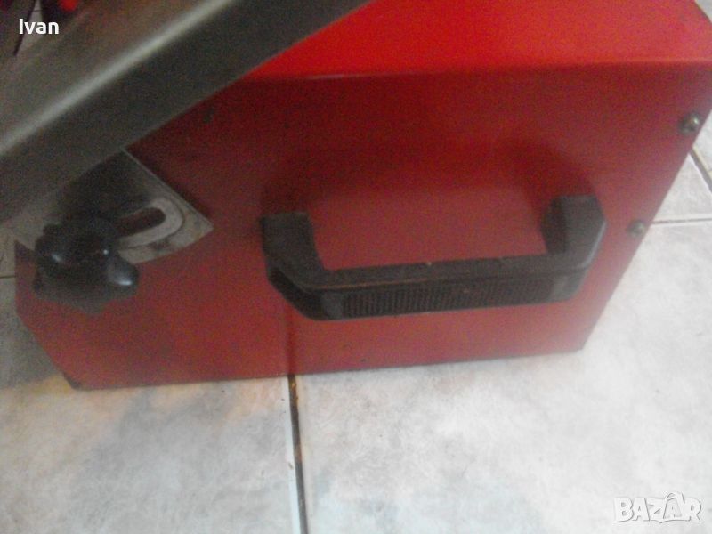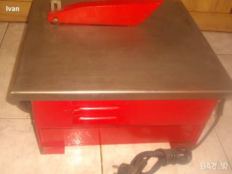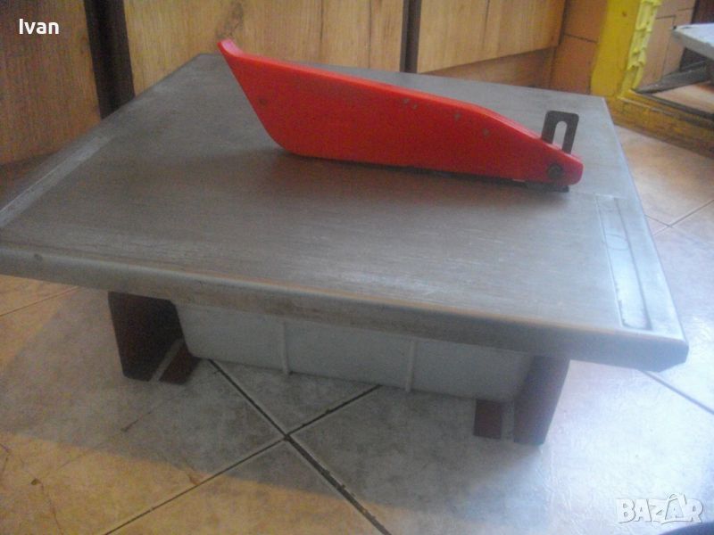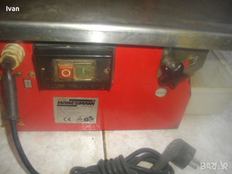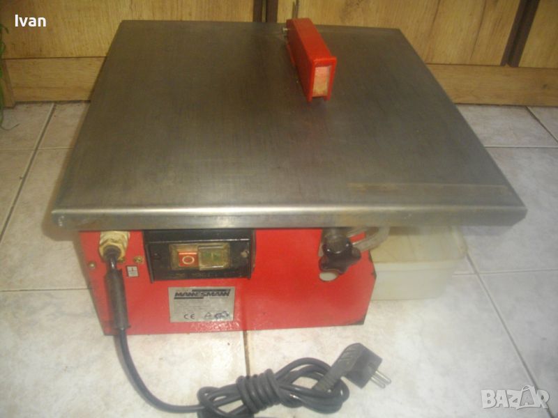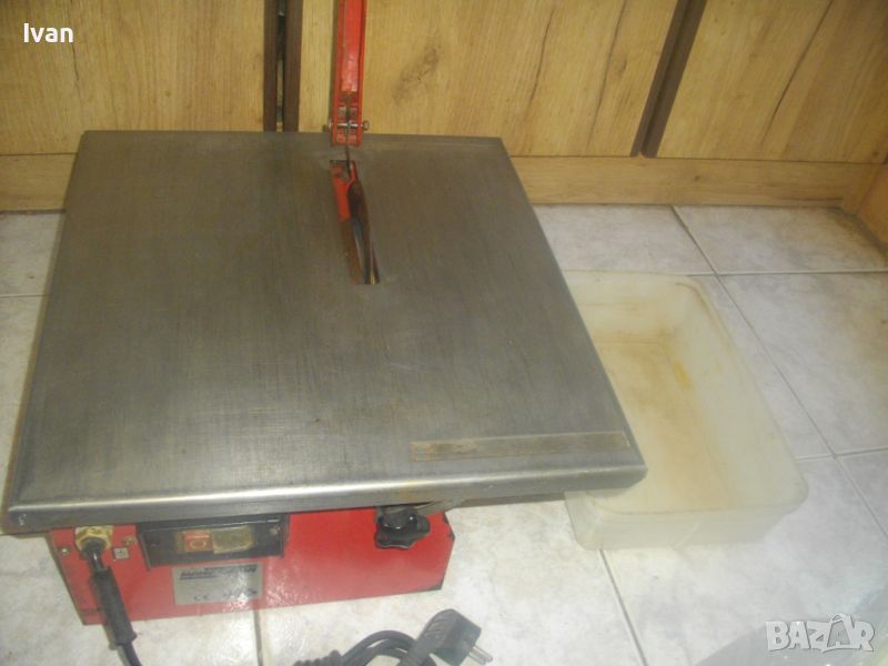 ОПИСАНИЕ на ел.машина 560 вата/ф180 вата-немска Mannesmann с бяла вана за вода - цена 259 лв. За мокро и сухо рязане. Налична е оригиналната вана за вода под диска. Марка и модел на машината - Mannesmann. Производство оригинално 1999 г на Mannesmann Werkzeuge. Запазен външен вид на машината и отлично техническо/работно състояние. Без забележки. Мощност на мотора - 560 вата, защита 2,65 ампера, време на работа с 1 пуск - 20 мин. Рязане мокро и сухо до дебелина плочи/камък 32 мм. Скорост - 2850 об/мин. За големи дискове диамантини размер ф 180 мм. Поставен на машината оригинална диамантина отлична ф 180 мм. Рязане под ъгъл 0-45 градуса. Плот инокс неръждавейка с размери 400 х 420 мм. Капак над диска наличен. 2 пускови бутона на корпуса на машината със силиконово, антипрахово покритие. Налична оригиналната вана за вода под диска за мокро рязане. Масивен метален корпус. Тегло на машината - 14,500 кг. Цена 259 лв.