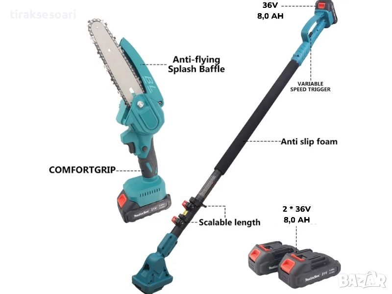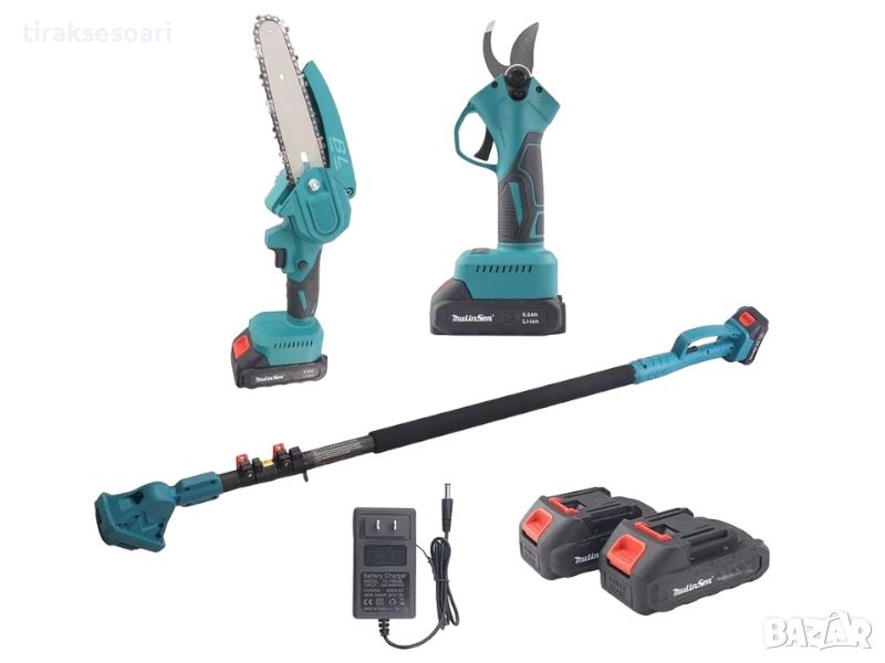 3в1 Градински Комплект Телескопичен Прът Акумулаторна Ножица и Резачка За Клони и Лозето 36V 8,0AH