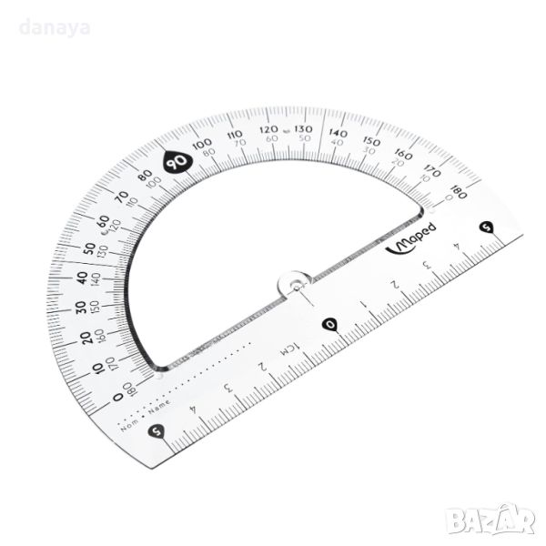 Транспортирът от Maped е изработен от прозрачна пластмаса, която е устойчива на счупване. Той е подходящ чертожен инструмент за употреба както у дома, в офиса или детската градина, така и в училище. Основата му представлява линия, разграфена в сантиметри, която е с дължина 12 cm. Ъгъла на транспортира е 180°.