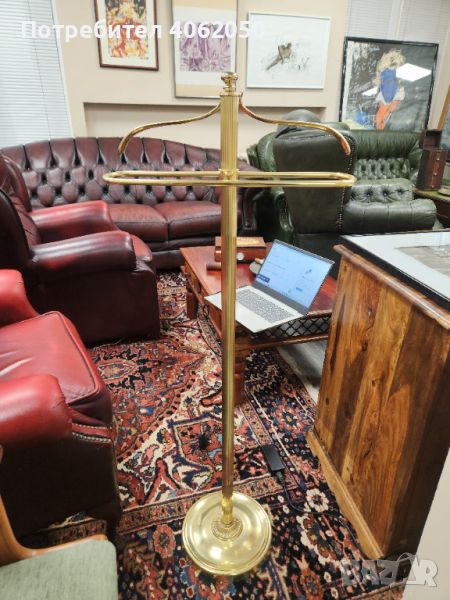 Изключително красив комплект стоящи лампа и и закачалка за костюм от месинг. Производство на немската фирма Sölken Leuchten около 1950-70г.