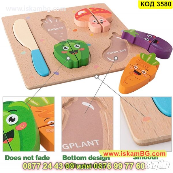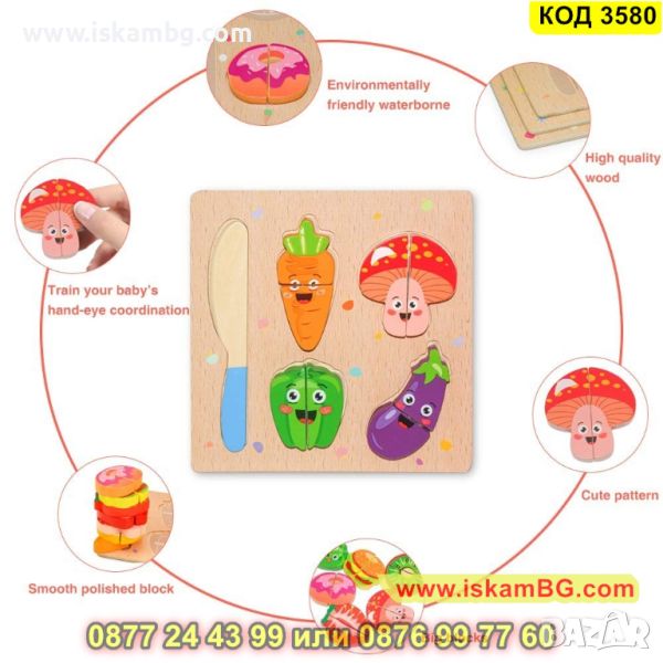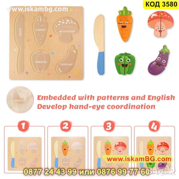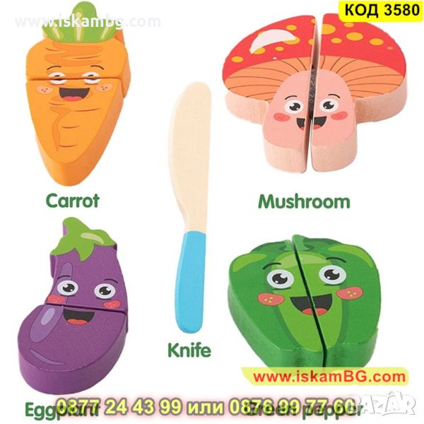 Дървен комплект за рязане - зеленчуци с дъска - КОД 3580