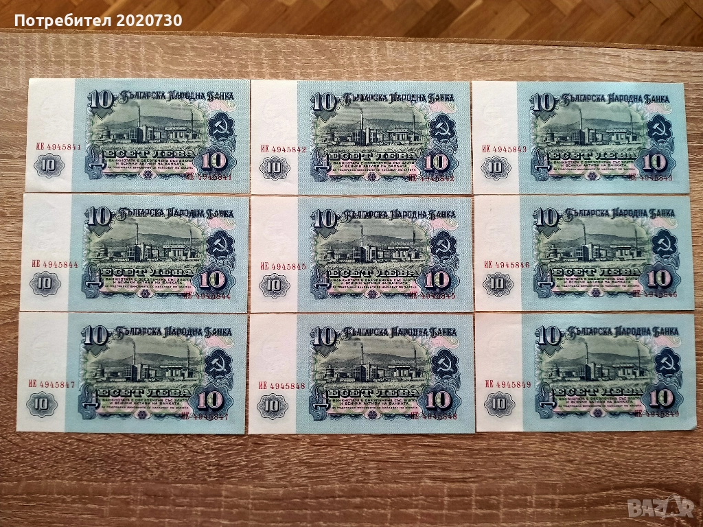 Продавам 9 бр. банкноти от 1974г., всяка с
