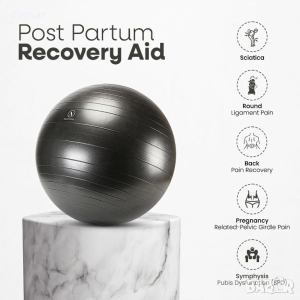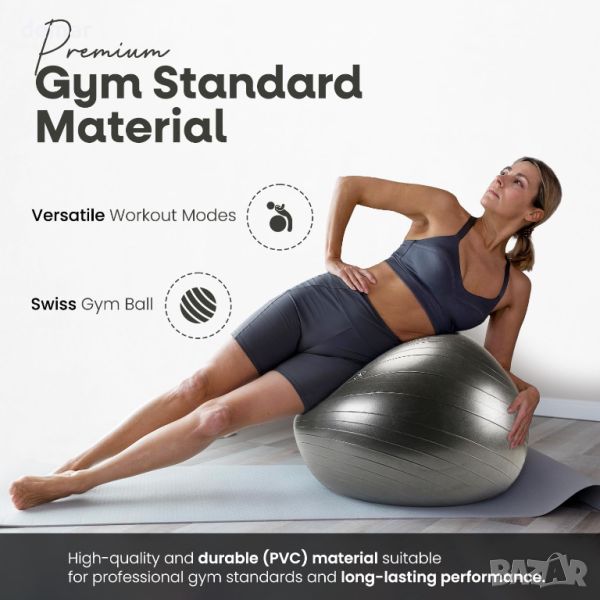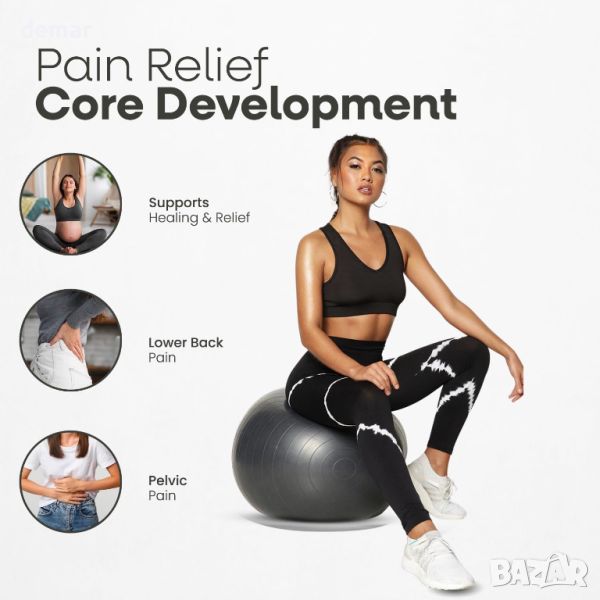 NLFITNESS 65 см топка за йога - елегантна, гладка и уникално проектирана да подобри начина ви на живот. Тази универсална топка предлага набор от предимства, включително облекчаване на ишиас, болки в връзките, болки в гърба, болки в тазовия пояс и дисфункция на пубисната симфиза. Изпитайте подобрен комфорт и подкрепа за различни упражнения и ежедневни дейности.