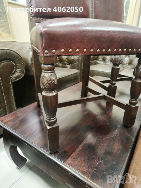 2 стола тип Честърфийлд от естествена кожа, с висок гръб и дърворезба., снимка 1 - Столове - 45301405 2 стола тип Честърфийлд от естествена кожа, с висок гръб и дърворезба., снимка 2 - Столове - 45301405 1/2