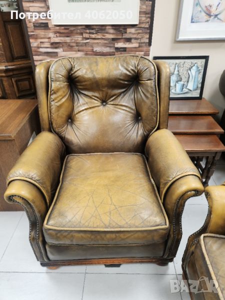 Кресло/фотьойл тип Честърфийлд, естествена кожа, цвят уиски., снимка 1 - Дивани и мека мебел - 45301518 Кресло/фотьойл тип Честърфийлд, естествена кожа, цвят уиски., снимка 2 - Дивани и мека мебел - 45301518 1/2