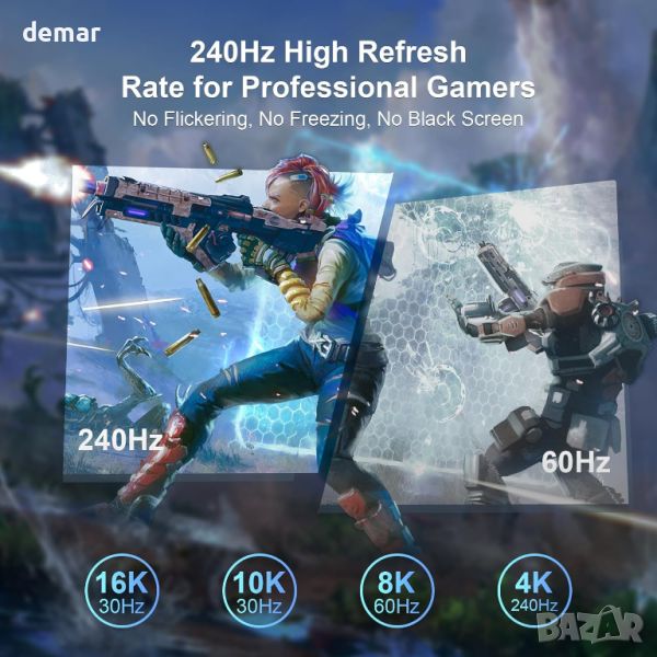 16K оптичен кабел 5M и 1М, DP 2.1 кабел [16K@30Hz, 8K@60Hz, 4K@240Hz]
