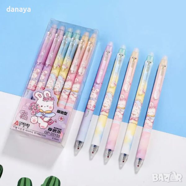 Изтриващ се син химикал с гума с много сладурски дизайн на зайчета. Клик модел. Изтриваем химикал, пишещ със синьо мастило. Изтрива се много лесно и бързо и не оставя следи. Особено подходящ за деца от началните класове.