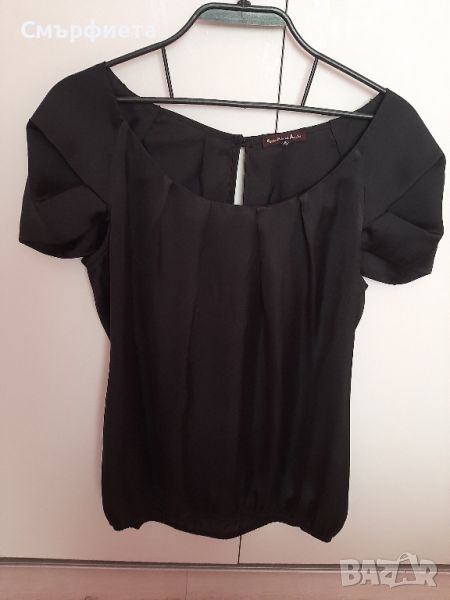Нежна блузка за ежедневието и офиса от сатен размер М, с интересен ръкав обличана 1-2 пъти
