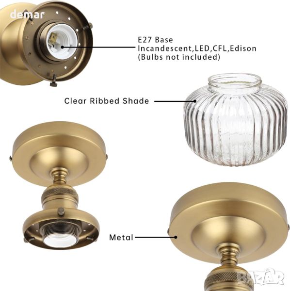 Тази кабелна таванна лампа разполага със стандартна за Обединеното кралство монтажна плоча за лесен монтаж от професионален електротехник, с предоставено ръководство за потребителя. Работи на 110-220 V с E27 базови крушки, включително LED, CFL и нажежаема жичка, до 40 вата. Съвместим с димерни превключватели за регулируема яркост. Неговата арматура в античен стил и прозрачни стъклени нюанси предлагат вечна привлекателност, идеална за различни пространства като спални, коридори, кухни и всекидневни. Дизайнът за вграден монтаж е подходящ както за ниски, така и за високи тавани, осигурявайки достатъчно пространство, като същевременно излъчва мека, привлекателна светлина. (Крушката не е включена; препоръчителна максимална дължина 10 см ST45/G40 крушка.)