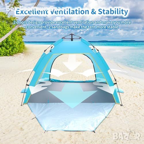 Нова палатка Бързо Разгъваем Плажен Шатър UV Защита Лек Просторен