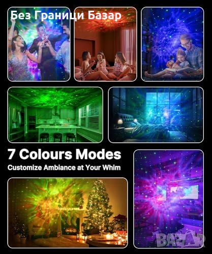 Мечтаните ефекти на небулата: Потопете се в 7 романтични ефекта на небулата с мерцащи зелени звезди. Идеален за детски стаи, вечери на игри или романтични обстановки.