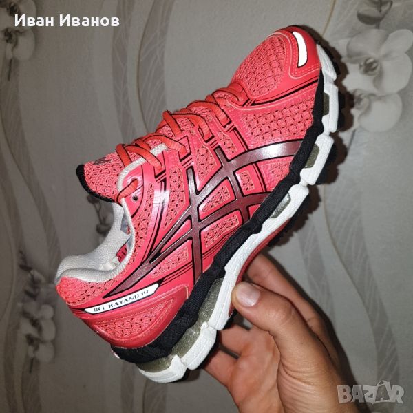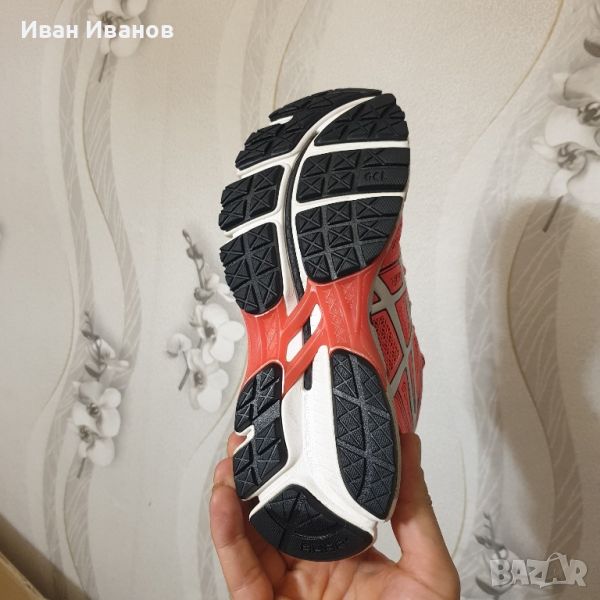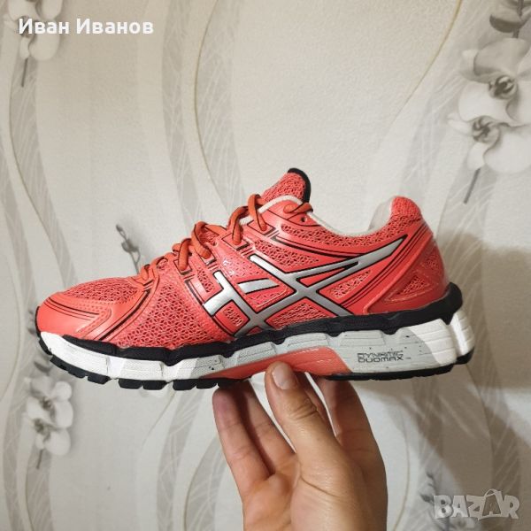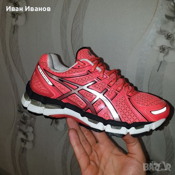 ASICS GEL-KAYANO 19 Нови Страхотен цвят за лятото Много красиви и удобни Най-новото издание от всепризнатата серия GEL-KAYANO затвърждава водещата си позиция в категорията структурирано омекотяване.GEL-KAYANO 19 е значително по-лек, като същевременно запазва известната си комбинация от омекотяване и опора, която е идеална за леки до умерени свръхпронации .Вълнуваща нова технология е Guidance Trusstic, проектирана да работи с направляващата линия по външната подметка. Заедно те насърчават по-ефективната походка, като същевременно осигуряват опора на средната част на стъпалото.Clutch Counter създава плътно, поддържащо и динамично прилягане около петата ви. Освен това дава малко повече стабилност от вътрешната страна на крака ви, за да компенсира свръхпронацията.Леката горещо стопяема горна част с по-малко шевове и по-малък потенциал за раздразнение осигурява подобрен комфорт .GEL-KAYANO 19 е идеален за дълги тренировъчни бягания , като предлага както подкрепата, така и комфорта, от който се нуждаете.Технологии: 3M отразяванеСпециален отразяващ материал, който подобрява видимостта при слаба светлина. 3m Scotchlite е регистрирана търговска марка на компанията 3M.ГЕЛ за задно и предно стъпалоНамалява шока по време на фазите на удар и отдръпване на пръстите и позволява движение в множество равнини, докато кракът преминава през цикъла на походка.Насочваща линияGuidance Line поставя видим канал в средата и външната подметка, който следва центъра на натиск на крака от петата до пръстите. Резултатът е по-адаптивна платформа за бягане, създаваща по-плавен преход от удар на петата към пръстите на пръстите с всяка крачка. По този начин направляващата линия помага на бегачите да поддържат естествена, ефективна походка, особено на дълги разстояния.Biomorphic Fit горна частЕластичен материал, стратегически поставен върху горната част, който намалява струпването, когато обувката се движи, намалявайки риска от мехури и раздразнение.IGS (система за насочване при удар)Impact Guidance System (IGS) е философия на дизайна на ASICS. Тя има за цел да накара компонентите на обувките от задната част до средната част на стъпалото и предната част да работят заедно ефективно, за да позволят на тялото да работи по естествен начин. Дизайнерите на ASICS се стремят да правят комплименти, а не да коригират как се движат краката и стъпалата.Материал на междинната подметка SolyteГъбест слой между подметката и горната част, предназначен да абсорбира удара и да омекотява крака. Solyte е по-лек материал от SpEVA и EVA и се отличава с повишена издръжливост.DuraSpongeDuraSponge е издухано AHAR съединение за подобрено омекотяване и издръжливост в предната част на стъпалото. Каучукът с висока устойчивост на абразия (AHAR) на ASICS е здрава смес, използвана в тежката контактна зона на външната подметка.ComforDry чорапСтелка, поставена вътре в обувката, която осигурява омекотяване, като поддържа крака сух и по-хладен.AHAR (ASICS Високоустойчива на абразия гума)Здрав материал, поставен в критични зони на силен контакт върху обувката за изключителна издръжливост.Биоморфна кройкаBiomorphic Cut е процес на рязане и зашиване на тъкани, базиран на обширни изследвания за това как се движи тялото. Позволява максимална свобода на движение.