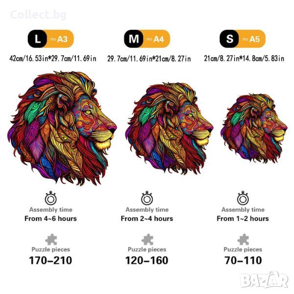 Дървен пъзел с животни - Лъв → Обява 45306928