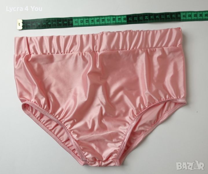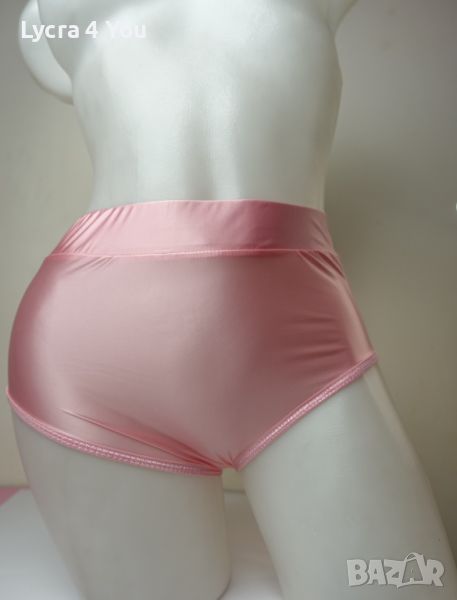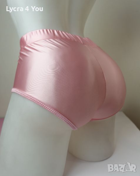 Бонбонено розова много лъскава дамска бикина, или полубоксер от сатенена ликра с еластичност във всички посоки.