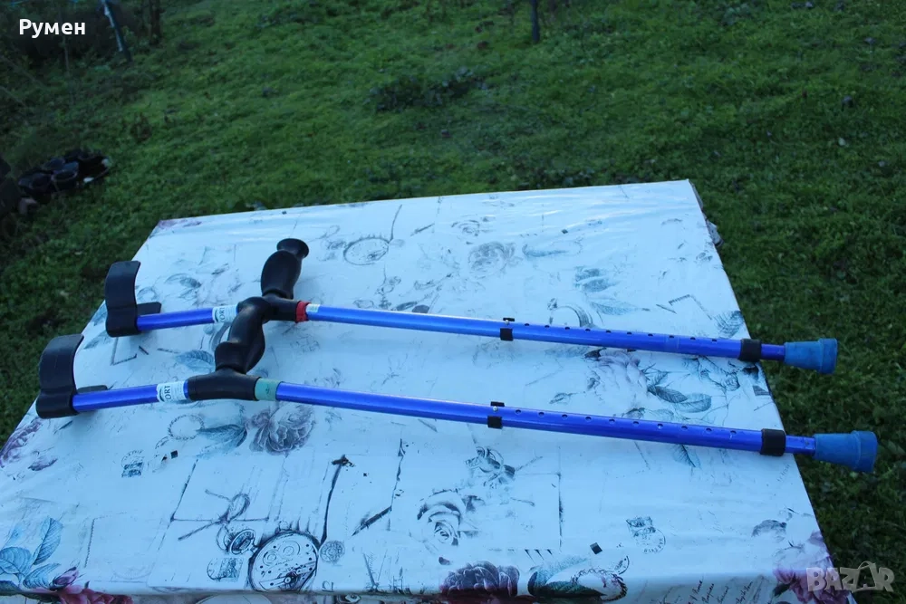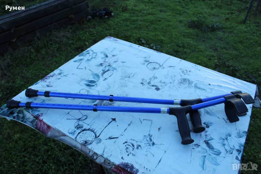 Комплект от две патерици канадки с полукръгъл подлакътник с ергономични ръкохватки за лява и дясна ръка с полукръгъл подлакътник(сини) - 15.00 Евро