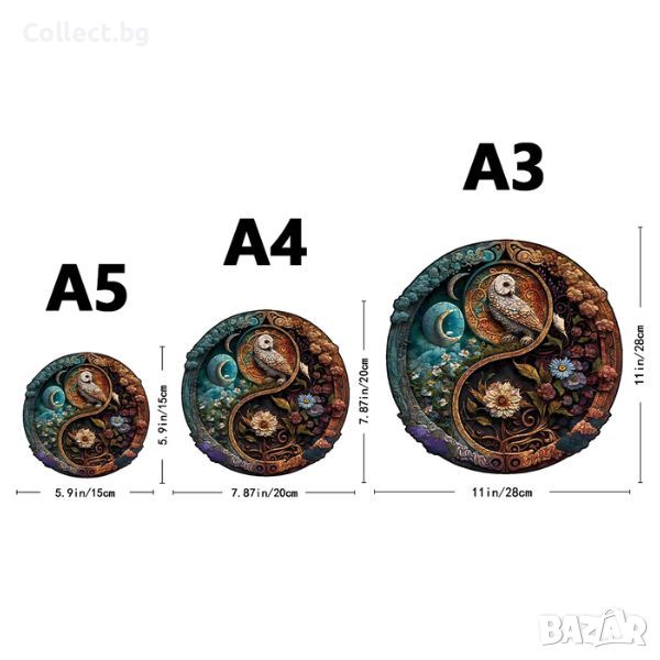 Дървен пъзел с животни - Сова Ин-Ян → Обява 45312075