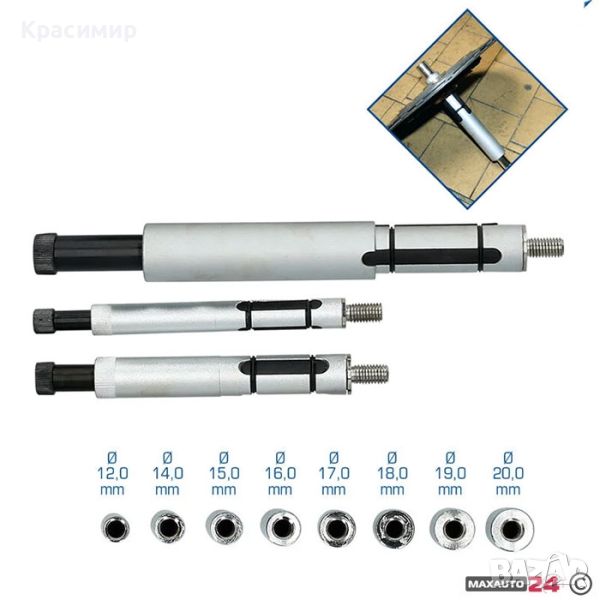 - Комплекта включва 8 прецизни стоманени втулки и 3 разширяващи се водача.