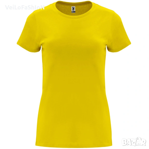 Новa дамска изчистена тениска в зелен, жълт, син, тюркоазен цвят, розов или светлосин цвят. Произведена от 100% памук с плътност на тениската 170гр./м². Тениската е с двуслойно деколте, странични шевове и подсилено двойно покритие на шията и раменете. Подходяща както за ежедневна употреба, така и за спорт или тренировка в свободното време.