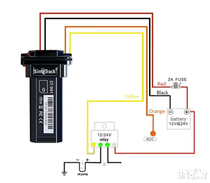 Жълтия кабел може да се свърже към реле за прекъсване на двигателя и също не е задължителен за свързване.