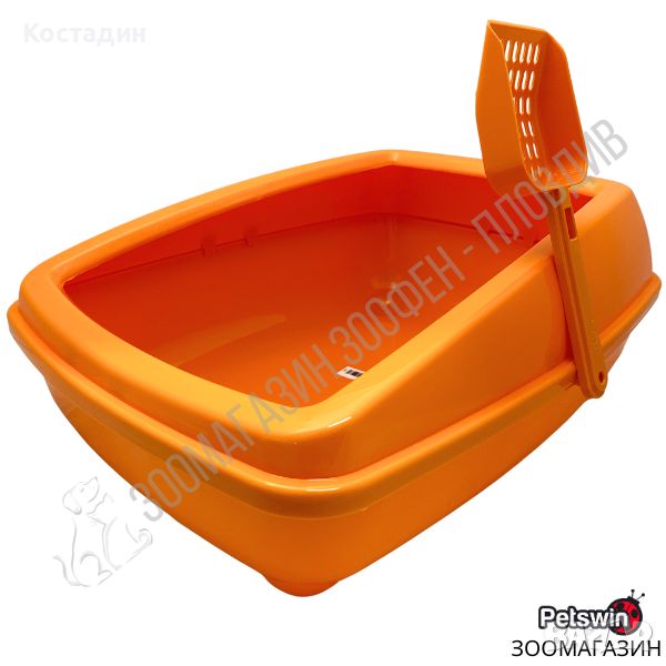 Пластмасова Котешка Тоалетна - с Борд - с Лопатка - 50см/38см/20см - Оранжев цвят - Mio