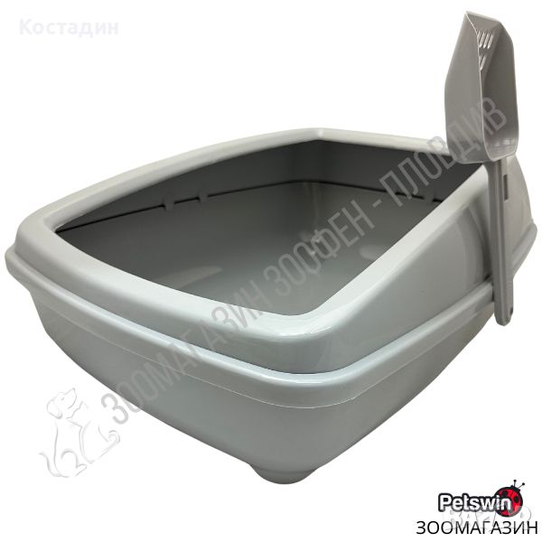 Пластмасова Котешка Тоалетна - с Борд - с Лопатка - 50см/38см/20см - Сив цвят - Mio