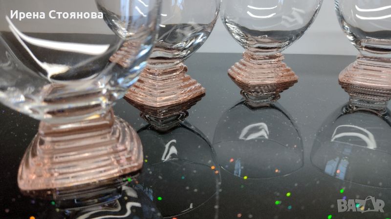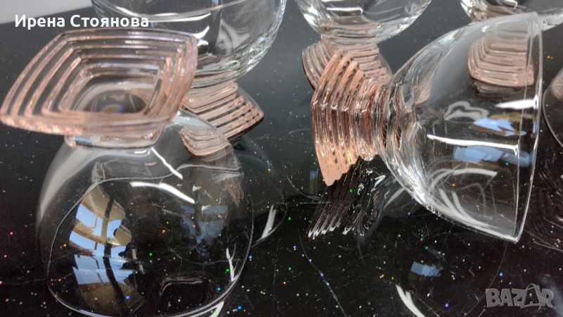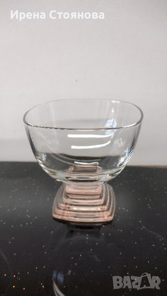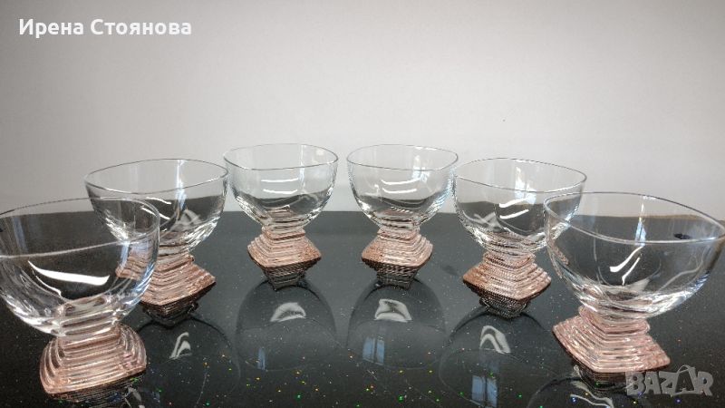 Комплект 6 чаши Nabucco Crystal Glass, Bormioli Rocco Италия, дизайн R. Licenziato Monti. Водят се за шампанско/просеко, но са идеални за поднасяне на крем или мелба. Интересен дизайн, оребрено квадратно столче в цвят пушена сьомга. Вместимост 250 мл, височина 8,5 см, 8,8/8,8 см. Минимални, незабележими следи. Цена за комплекта 90 лв.