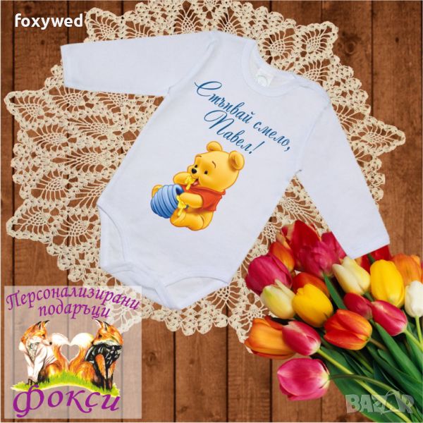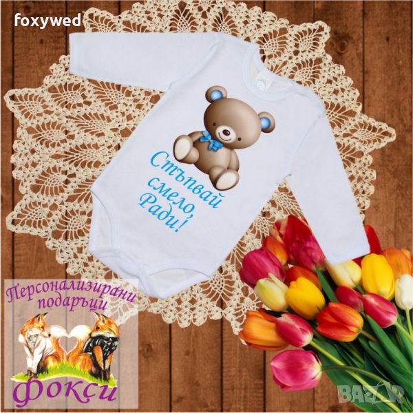 Персонализирано бебешко боди Стъпвай смело + име на детето.