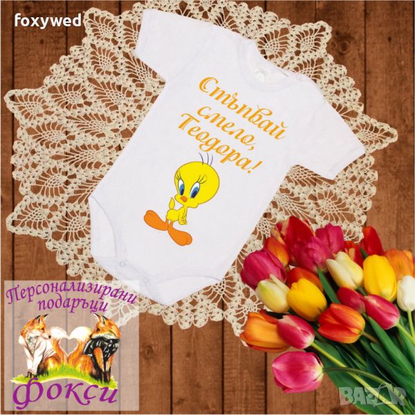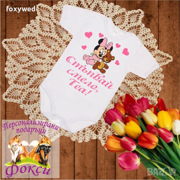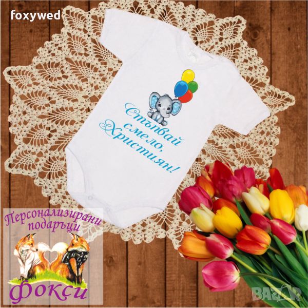 Персонализирано Бебешко Боди Стъпвай смело с къс или дълъг ръкав по избор → Обява 45317109