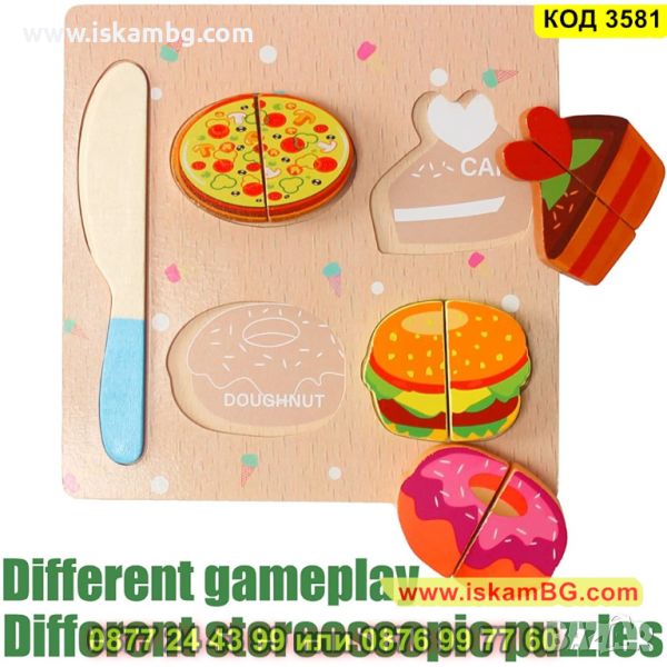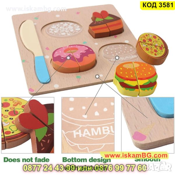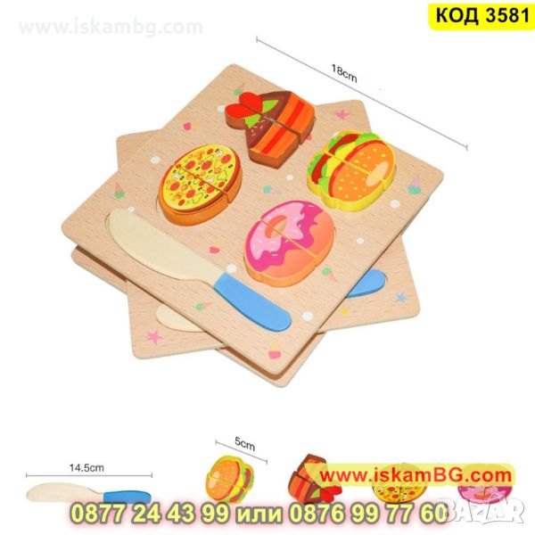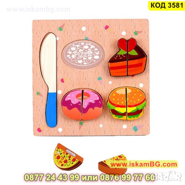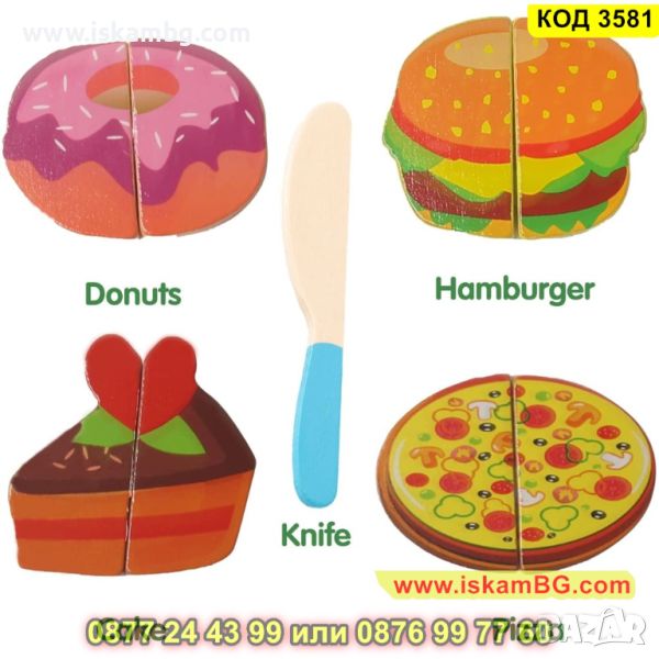 Детски игрален дървен комплект Храна за рязане с нож и дъска - КОД 3581
