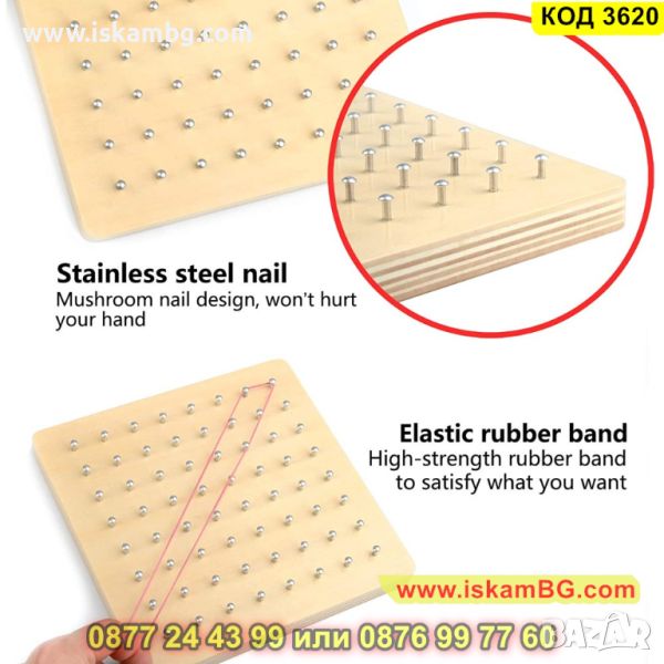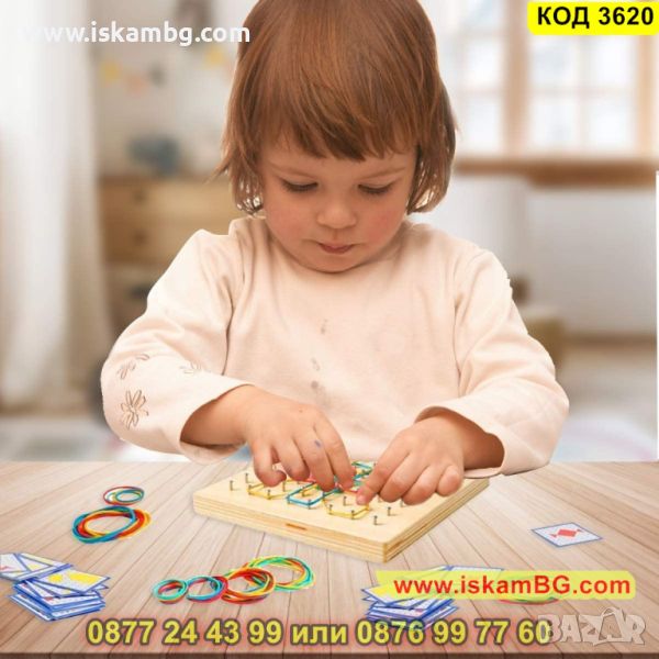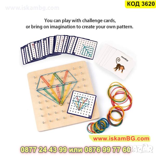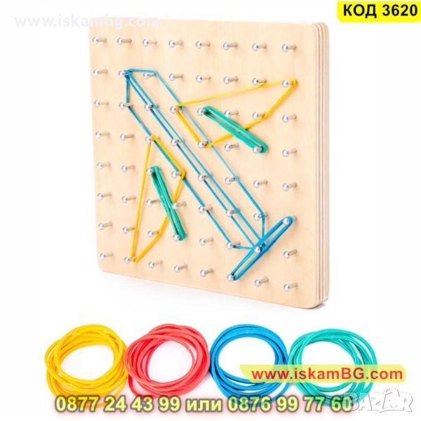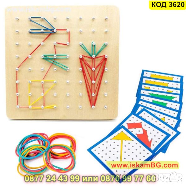 "Геобордът - дървена дъска за образуване на фигурки с ластички, е отличен начин за развиване на творческото мислене и геометричните умения на децата. Този образователен инструмент предоставя възможността да се създават различни форми и фигури, като децата използват ластички върху дървената дъска.