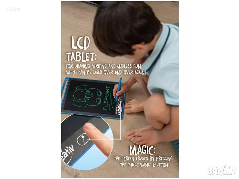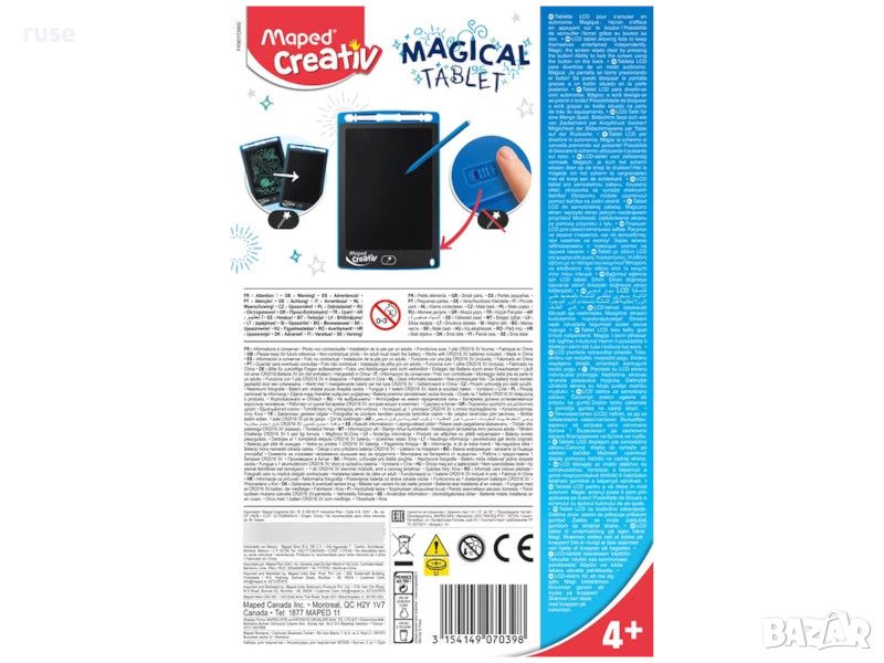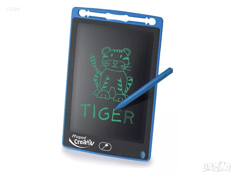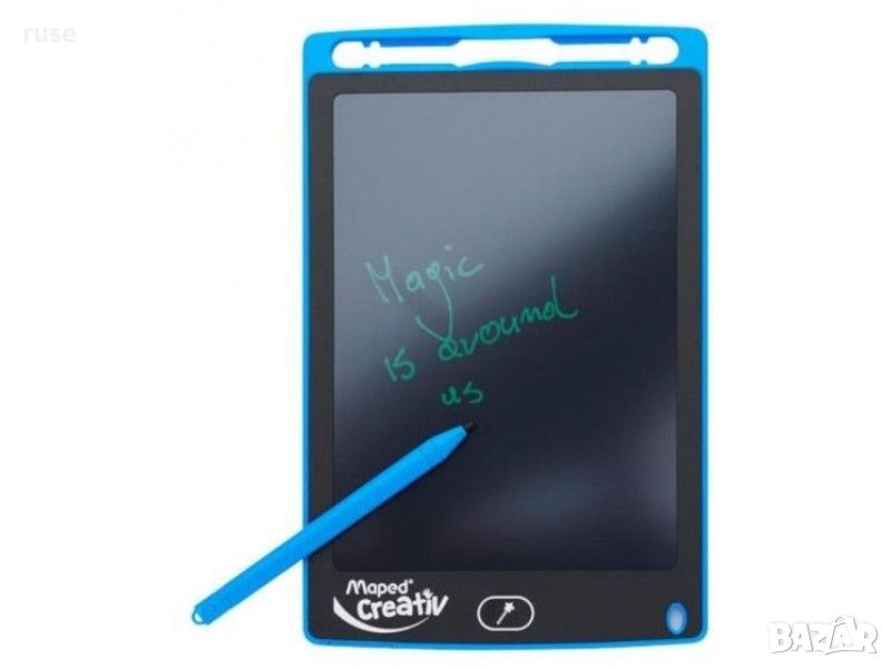 Mагически таблет Maped Creativ, с който вашето дете може да се отдаде на своите творчески хобита самостоятелно. Вълшебния таблет му позволява да се научи да рисува и пише лесно. Написаното на LCD екрана изчезва за миг, благодарение на бутона "вълшебна пръчица". Така детето може да започне да рисува отново и отново. То може също така да заключи екрана на таблета за рисуване, за да покаже работата си или да накара възрастен да коригира писмено или аритметично упражнение.