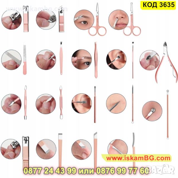 Комплект от 7/10/12/15 части за маникюр и педикюр в розов цвят - КОД 3635